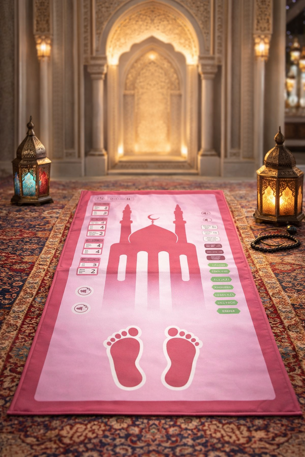Seccade üzerindeki ayak izleri, namazda doğru pozisyonu anlamayı kolaylaştırır.
